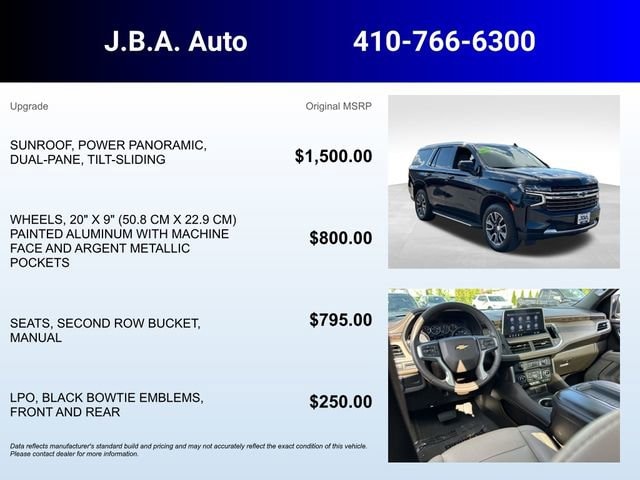 At JBA Chevrolet, we have a rigorous inspection of every vehicle. We strive to offer you a great deal, an excellent selection and a sincere, professional sales staff to make every experience here an enjoyable one. Come see us today to see why our customers choose to make JBA Chevrolet THE place to purchase their next vehicle. **410-766-6300**