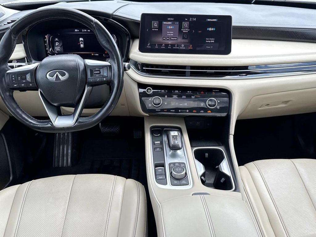 2023 INFINITI QX60 Sensory Majestic White AWD 3.5L V6 Certified. Power Liftgate,, All Wheel Drive, Panoramic Sunroof,, 10.8" Head-Up Display, 6,000 lb. Tow Capacity, Adaptive Front Lighting System, Air Conditioning, Automatic temperature control, Hitch Member & Receiver, Navigation system: INFINITI InTouch Navigation, Smart Rear View Mirror, Tow ECU, Tow Package, Tow Pre-Wiring, Trailer Stability Program (Sway Control), Transmission Oil Cooler, Vision Package. CARFAX One-Owner. Odometer is 3380 miles below market average!