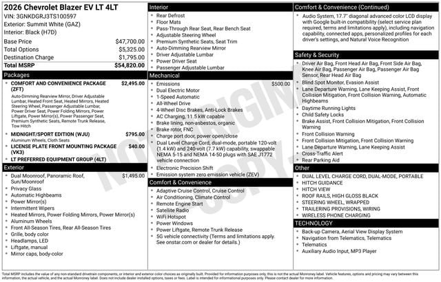 - $1,000 Customer Cash on this 2026 Chevrolet Blazer EV modelDetails