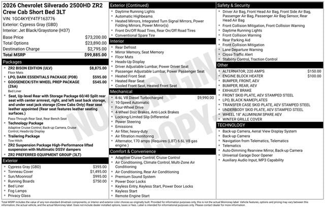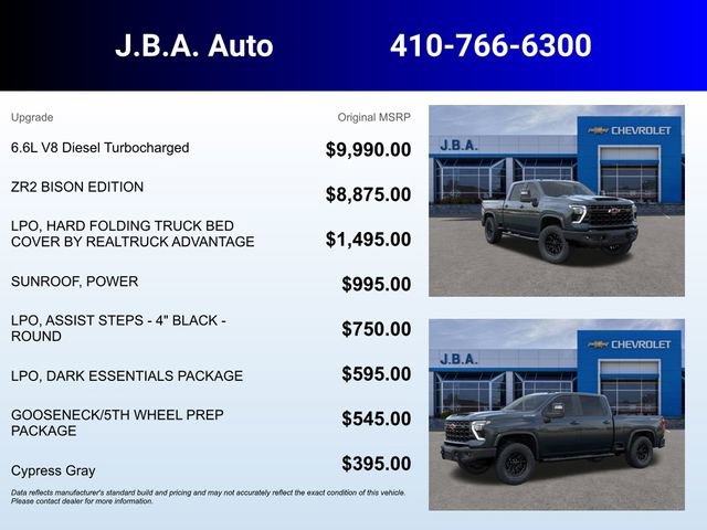 Cypress 2026 Chevrolet Silverado 2500HD ZR2 4WD 10-Speed Automatic Duramax 6.6L V8 Turbodiesel Some rebates listed may require customer to finance through preferred lender, see dealer for details, Price includes: $500 - Chevrolet Bonus Cash. Exp. 03/31/2026 $500 - Chevrolet Consumer Cash Program. Exp. 03/31/2026
