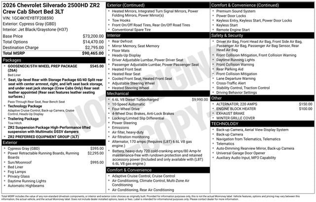 Cypress 2026 Chevrolet Silverado 2500HD ZR2 4WD 10-Speed Automatic Duramax 6.6L V8 Turbodiesel