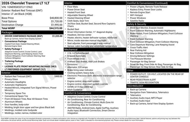 Radiant Red 2026 Chevrolet Traverse LT FWD 8-Speed Automatic 2.5L DOHC