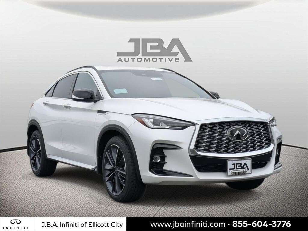 White 2025 INFINITI QX55 LUXE AWD CVT I4 Power Liftgate,, All Wheel Drive, Power moonroof.