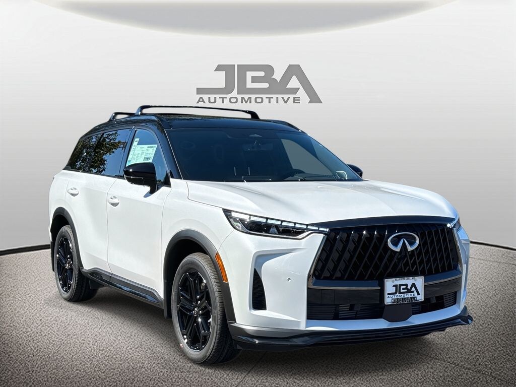 White / Black 2026 INFINITI QX60 SPORT AWD 9-Speed Automatic 2.0L I4 MPI Turbocharged DOHC 16V 268hp Panoramic Sunroof,, 17 Speakers, ABS brakes, Active Cruise Control, Alloy wheels, Bose Performance Series 17-Speaker Sound System, Electronic Stability Control, Front dual zone A/C, Heated door mirrors, Heated front seats, Heated rear seats, Illuminated entry, Low tire pressure warning, Navigation System, Power Liftgate, Remote keyless entry, Traction control.