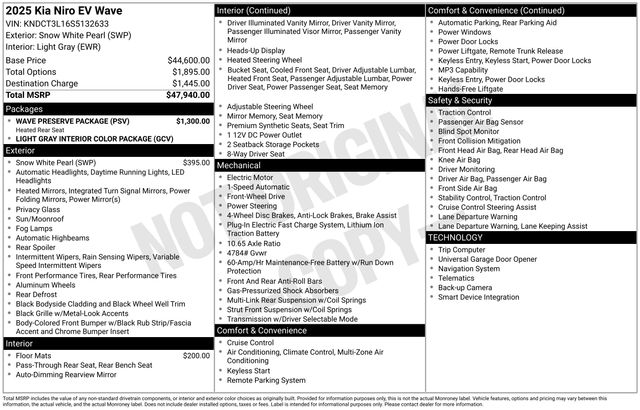 Snow White Pearl 2025 Kia Niro EV Wave FWD 1-Speed Automatic Electric Motor