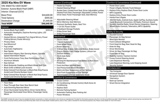 Aurora Black Pearl 2025 Kia Niro EV Wave FWD 1-Speed Automatic Electric Motor
