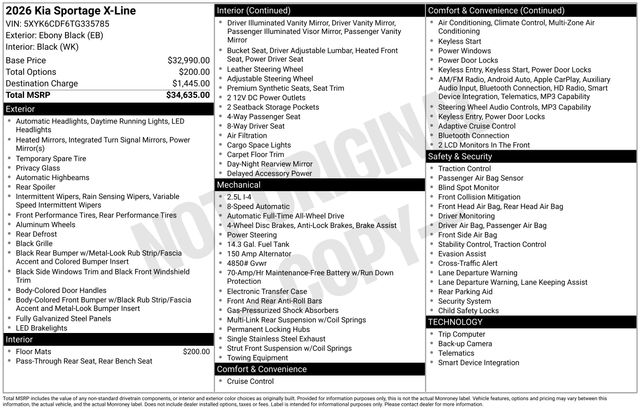 Ebony Black 2026 Kia Sportage X-Line AWD 8-Speed Automatic I4