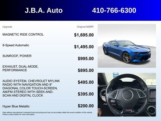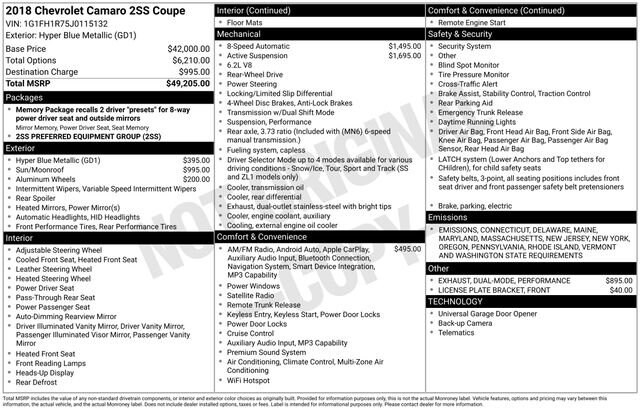 2018 Chevrolet Camaro SS NAVIGATION, SUNROOF, LEATHER, BLUETOOTH, BACK UP CAMERA, HEATED AND COOLED SEATS, SATELLITE RADIO, ONSTAR NAVIGATION, APPLE CAR PLAY, SERVICE RECORDS AVAILABLE, 6-Way Power Front Passenger Seat Adjuster, 8-Way Power Driver Seat Adjuster, Alloy wheels, AM/FM radio: SiriusXM, Front Bucket Seats, Heads-Up Display, Heated Driver & Front Passenger Seats, Heated front seats, Heated steering wheel, Leather-Trimmed Seat Trim, Memory seat, Power driver seat, Power Sunroof, Preferred Equipment Group 2SS, SiriusXM Satellite Radio, Ventilated Driver & Front Passenger Seats, Ventilated front seats.