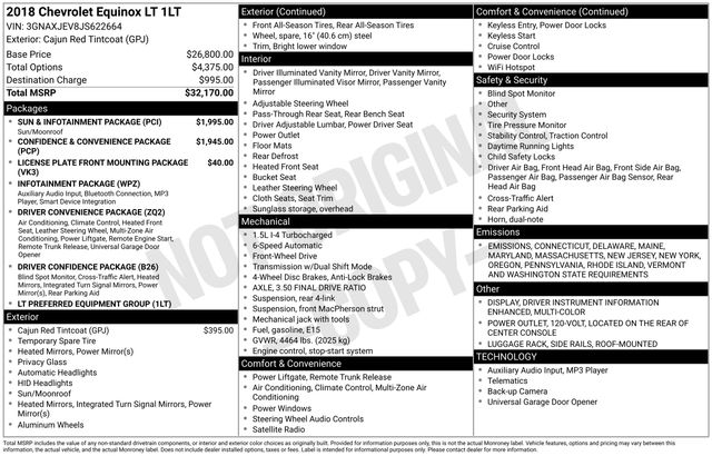 2018 Chevrolet Equinox LT NAVIGATION, SUNROOF, ONE OWNER, BLUETOOTH, BACK UP CAMERA, SATELLITE RADIO, ONSTAR NAVIGATION, REMOTE START, APPLE CAR PLAY, 120-Volt Power Outlet, Alloy wheels, AM/FM radio: SiriusXM, Confidence & Convenience Package, Driver Confidence Package, Driver Convenience Package, Dual Zone Automatic Climate Control, Enhanced Multi-Color Driver Instrument Info, Heated Driver & Front Passenger Seats, Infotainment Package, Power Sunroof, Preferred Equipment Group 1LT, Radio: 8" Chevrolet MyLink AM/FM Stereo, Rear Power Liftgate, Roof-Mounted Luggage Rack Side Rails, SiriusXM Satellite Radio, Sun & Infotainment Package.