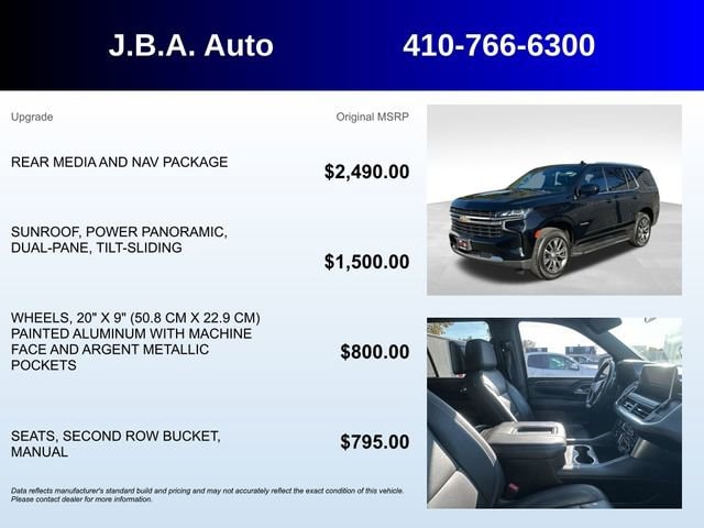 2021 Chevrolet Tahoe LT NAVIGATION, SUNROOF, LEATHER, BLUETOOTH, BACK UP CAMERA, GM CERTIFIED WARRANTY AVAILABLE, SATELLITE RADIO, ONSTAR NAVIGATION, FOUR WHEEL DRIVE, CLEAN VEHICLE HISTORY REPORT, REMOTE START, REAR ENTERTAINMENT, APPLE CAR PLAY, SERVICE RECORDS AVAILABLE, 1st & 2nd Row Color-Keyed Carpeted Floor Mats, 2 USB Data Ports, Alloy wheels, AM/FM radio: SiriusXM with 360L, Auto-Dimming Inside Rear-View Mirror, Bright Front & Rear Door Sill Plates, Color-Keyed Carpeting Floor Covering, Driver & Front Outboard Passenger Airbags, Dual-Pane Power Panoramic Sunroof, Floor Console w/Storage Area, Hands-Free Rear Power Programmable Liftgate, HD Radio, Heated Driver & Front Passenger Seats, Infotainment Display, Leather-Wrapped Steering Wheel, LED Daytime Running Lamps, Memory Settings for Driver, Power Liftgate, Preferred Equipment Group 1LT, Radio: Chevrolet Infotainment 3 Premium System, Rain sensing wipers, Rear Media & Nav Package, Rear Seat Media System, Remote Start, SiriusXM Radio w/360L, Universal Home Remote.