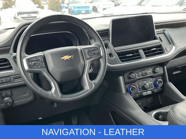 2023 Chevrolet Tahoe LT NAVIGATION, LEATHER, ONE OWNER, BLUETOOTH, BACK UP CAMERA, HEATED SEATS, GM CERTIFIED WARRANTY AVAILABLE, SATELLITE RADIO, ONSTAR NAVIGATION, THIRD ROW SEAT, FOUR WHEEL DRIVE, APPLE CAR PLAY, SERVICE RECORDS AVAILABLE, 10-Way Power Driver & Passenger Seat Adjusters, 1st & 2nd Row Color-Keyed Carpeted Floor Mats, Alloy wheels, AM/FM radio: SiriusXM with 360L, Auto-Dimming Inside Rear-View Mirror, Bose 9-Speaker Stereo Audio System Feature, Bright Front & Rear Door Sill Plates, Color-Keyed Carpeting Floor Covering, Driver & Front Outboard Passenger Airbags, Enhanced Driver Information Center, Floor Console w/Storage Area, Hands-Free Rear Power Programmable Liftgate, Heated Driver & Front Passenger Seats, Heated front seats, Infotainment Display, LED Daytime Running Lamps, Memory Settings for Driver, Navigation System, Power Liftgate, Preferred Equipment Group 1LT, Rain sensing wipers, Remote Start, SiriusXM Radio w/360L, Universal Home Remote, Wireless Charging, Wrapped Steering Wheel.