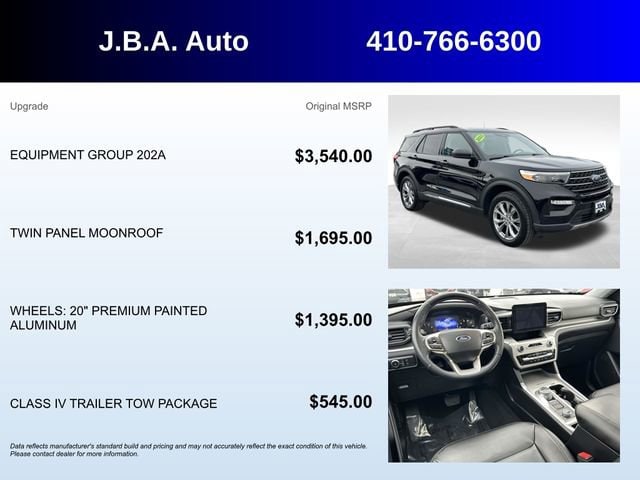 2022 Ford Explorer XLT NAVIGATION, SUNROOF, LEATHER, TOW PACKAGE, BLUETOOTH, BACK UP CAMERA, SATELLITE RADIO, FOUR WHEEL DRIVE, REMOTE START, POWER LIFT GATE, APPLE CAR PLAY, SERVICE RECORDS AVAILABLE, PANORAMIC ROOF, Acoustic-Laminated Front Side Windows, ActiveX Captain's Chairs, Alloy wheels, AM/FM radio: SiriusXM, Class IV Trailer Tow Package, Equipment Group 202A, Heated front seats, Heated Steering Wheel, LED Fog Lamps, Power Liftgate, Remote Start System, SecuriCode Keyless Entry Keypad, SYNC 3 Communications & Entertainment System, Twin Panel Moonroof.