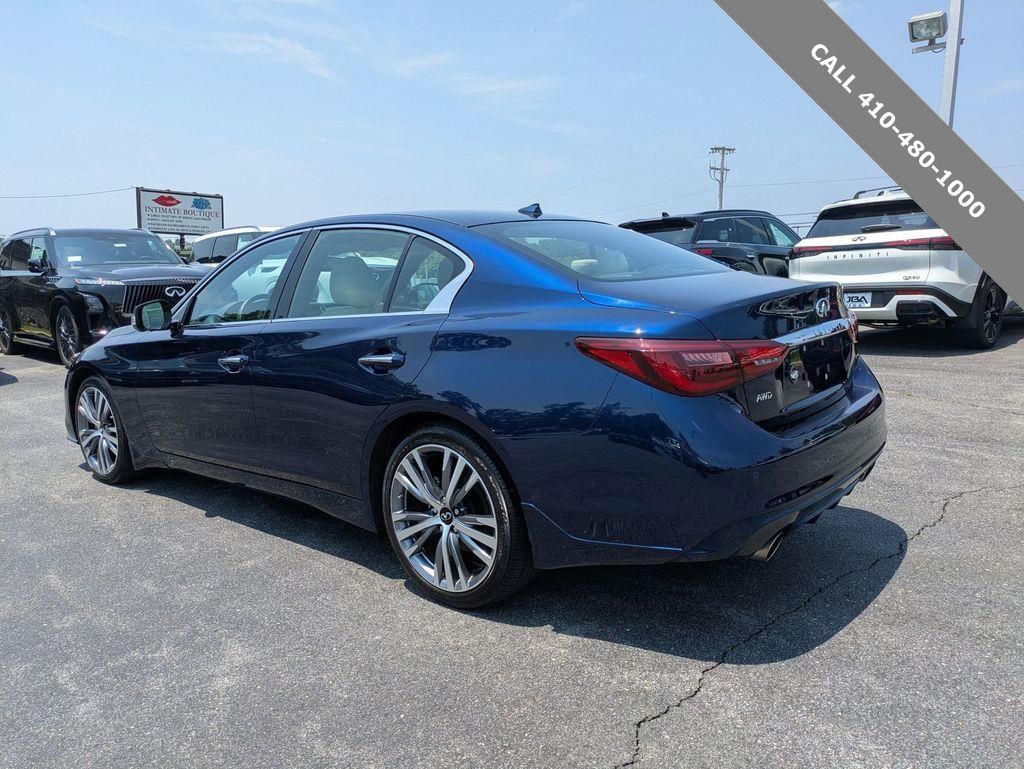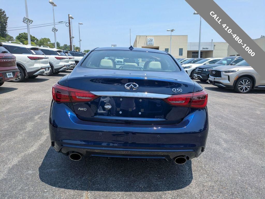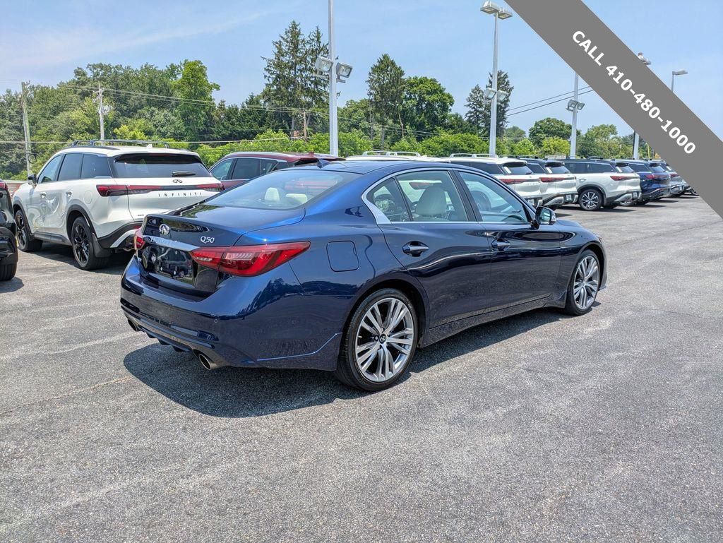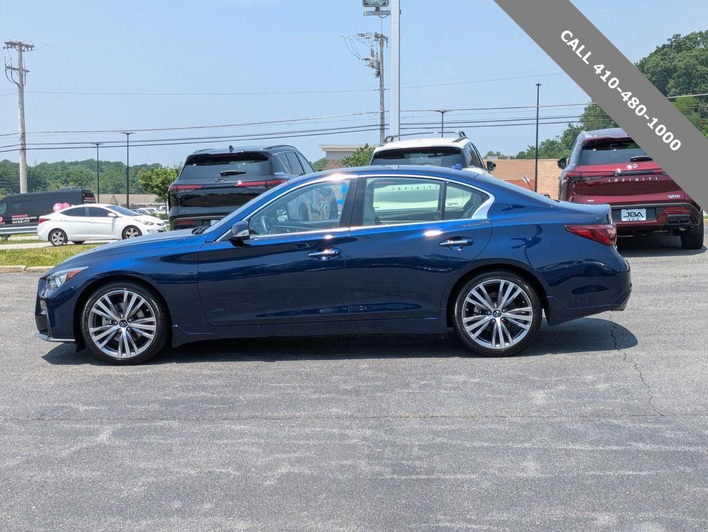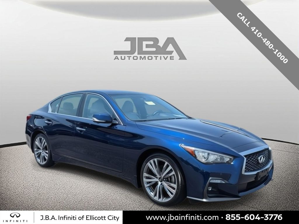 2022 INFINITI Q50 SENSORY Grand Blue AWD 3.0L V6 All Wheel Drive, 16 Speakers, 4-Wheel Disc Brakes, Air Conditioning, Blind Spot Warning, Navigation system: INFINITI InTouch Navigation, Power moonroof, Radio: INFINITI InTouch w/Navigation. CARFAX One-Owner. Clean CARFAX.