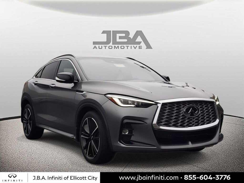 2022 INFINITI QX55 ESSENTIAL Graphite Shadow AWD I4 All Wheel Drive, 16 Speakers, Adaptive Front Lighting System, Air Conditioning, Blind Spot Intervention, Cube Design LED Headlights, Direct Adaptive Steering, Distance Control Assist, Head-Up Display, Intelligent Cruise Control, Intelligent Cruise Control (Full-Speed Range), Lane Departure Prevention, Navigation system: INFINITI InTouch Navigation, Power Liftgate, Power moonroof, ProACTIVE Package, ProASSIST Package, ProPILOT Assist, Radio: Bose Performance Series Premium Audio, Steering Assist, Traffic Sign Recognition. CARFAX One-Owner.