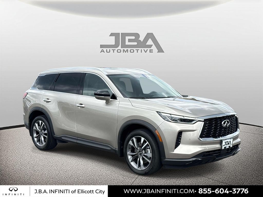 2023 INFINITI QX60 LUXE Warm Titanium AWD 3.5L V6 Leather,, All Wheel Drive, Panoramic Sunroof,, 9 Speakers, Air Conditioning, Automatic temperature control, Navigation system: INFINITI InTouch Navigation, Power Liftgate, Power moonroof, Power steering, Power windows. CARFAX One-Owner. Clean CARFAX.