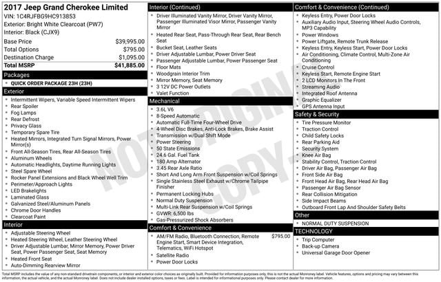 2017 Jeep Grand Cherokee Limited NAVIGATION, SUNROOF, LEATHER, ONE OWNER, BLUETOOTH, BACK UP CAMERA, HEATED SEATS, SATELLITE RADIO, FOUR WHEEL DRIVE, CLEAN VEHICLE HISTORY REPORT, SERVICE RECORDS AVAILABLE, 1-Year SiriusXM Radio Service, Alloy wheels, AM/FM radio: SiriusXM, For Details Visit DriveUconnect.com, For More Info, Call 800-643-2112, Memory seat, Navigation System, ParkView Rear Back-Up Camera, Power Liftgate, Quick Order Package 23H, SiriusXM Satellite Radio, Uconnect Access.At JBA Chevrolet, we have a rigorous inspection of every vehicle. We strive to offer you a great deal, an excellent selection and a sincere, professional sales staff to make every experience here an enjoyable one. Come see us today to see why our customers choose to make JBA Chevrolet THE place to purchase their next vehicle. **410-766-6300**
