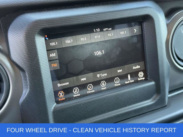 2022 Jeep Wrangler Unlimited Sport BLUETOOTH, BACK UP CAMERA, FOUR WHEEL DRIVE, CLEAN VEHICLE HISTORY REPORT, SERVICE RECORDS AVAILABLE, Quick Order Package 24B Sport, Radio: Uconnect 4 w/7" Display.