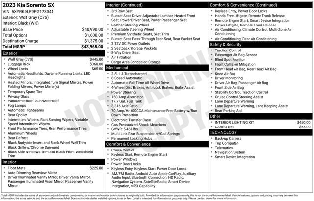 2023 Kia Sorento SX NAVIGATION, SUNROOF, LEATHER, ONE OWNER, BLUETOOTH, BACK UP CAMERA, HEATED SEATS, SATELLITE RADIO, ALL WHEEL DRIVE, REMOTE START, APPLE CAR PLAY, SERVICE RECORDS AVAILABLE, 3rd row seats: split-bench, Alloy wheels, AM/FM radio: SiriusXM, Front Bucket Seats, Heated Front Bucket Seats, Navigation System, Power Liftgate, Power moonroof, SynTex Artificial Leather Seat Trim.