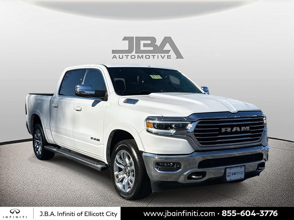 2023 Ram 1500 Laramie Longhorn Bright White Clearcoat 4WD HEMI 5.7L V8 Multi Displacement VVT eTorque Leather,, Heated Seats,, Air Conditioning, Dome Dual LED Reading Lamp, Dual-Pane Panoramic Sunroof, LED Dome/Reading Lamp, Navigation System, ParkSense Front/Rear Park Assist w/Stop, Power windows, Radio: Uconnect 5 Nav w/12.0" Display, Traction control. Clean CARFAX.